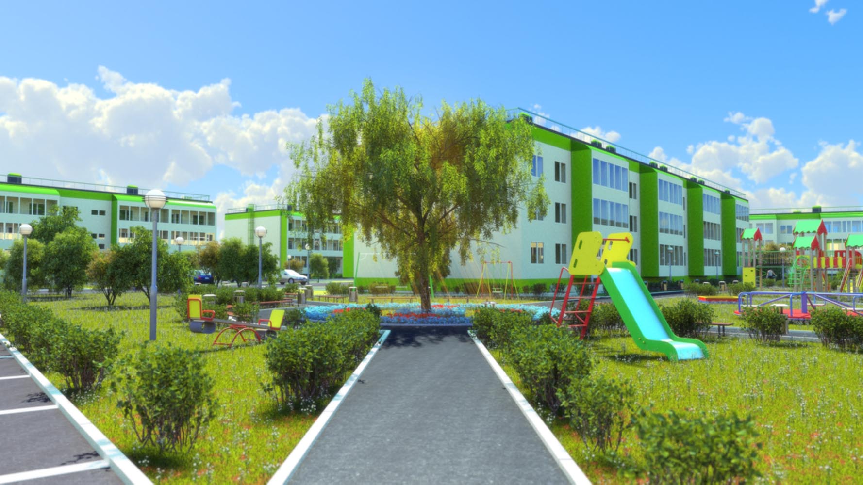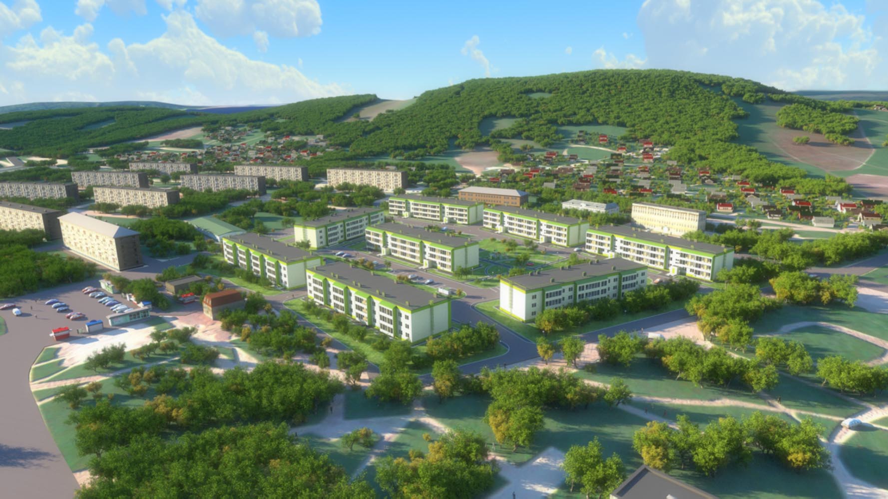 Было бы здорово сделать живописный вид сверху на всю территорию. Где отчетливо видны не только будущие постройки но и близлежащие объекты. Можно сделать красивый видеоролик в котором, покупатели смогут совершить экскурсию по будущему строительному объекту. Узнать его сильные стороны, прогуляться по интерьеру домов. Сопровождать экскурсию будет приятный голос диктора.